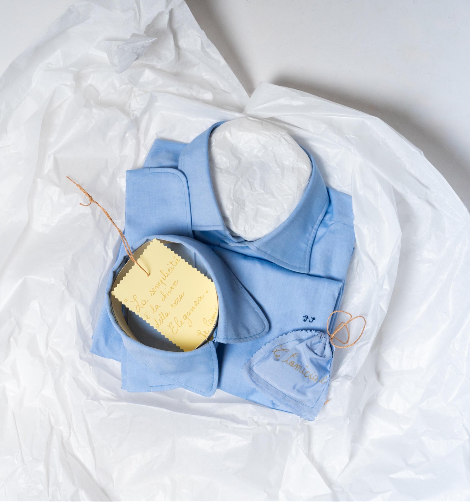 2. Selection of Model and Fabric: choice of design and fabric from our curated collections of fine Italian and English cottons, wools and linens.